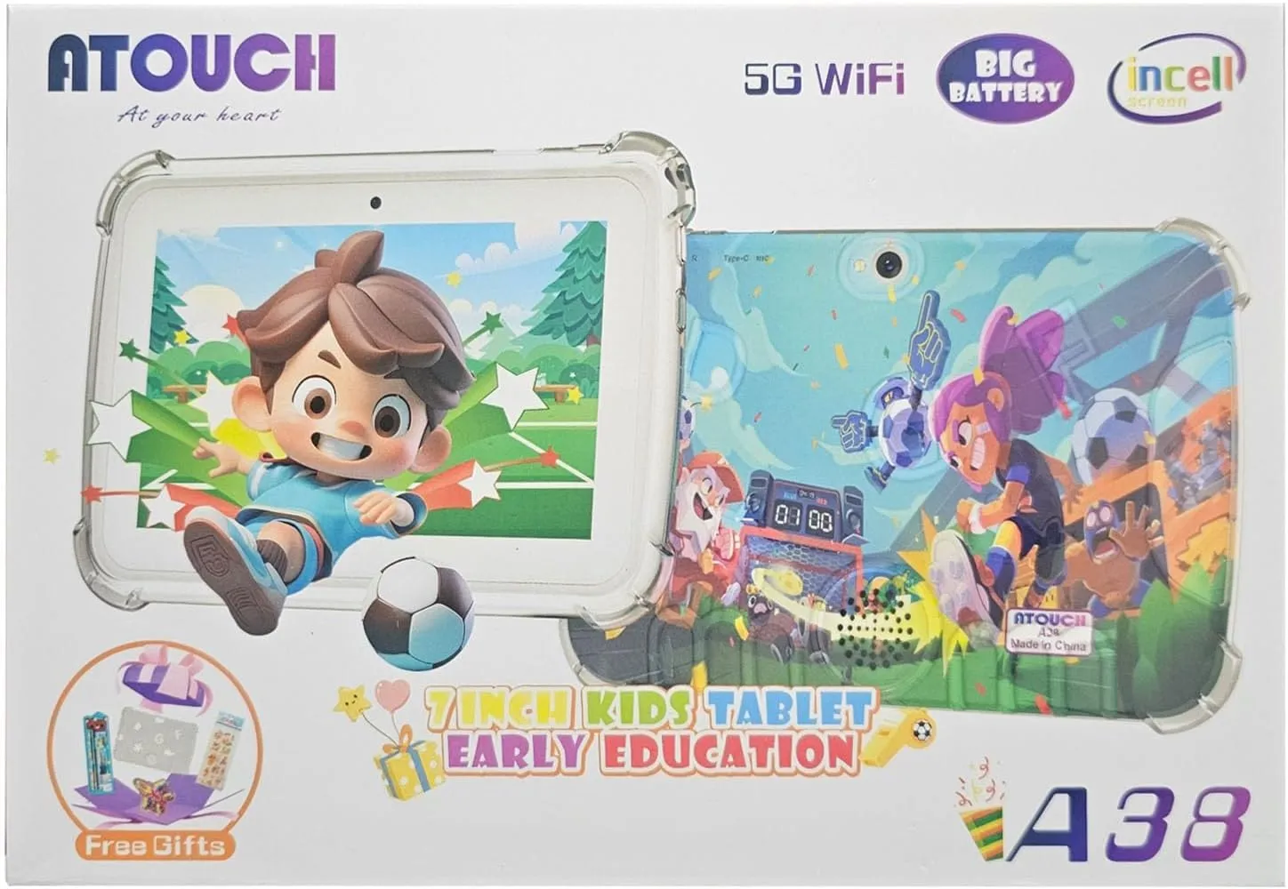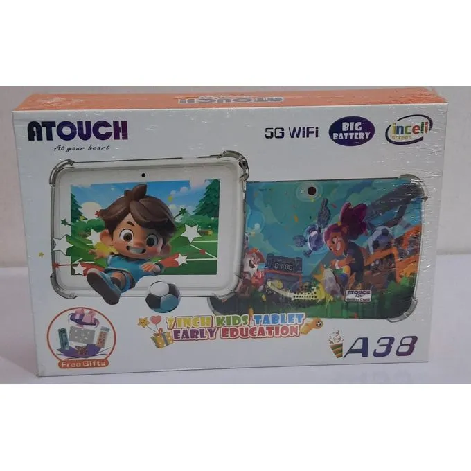 تابلت Atouch A38 للأطفال بشاشة ٧ بوصة ونظام أندرويد ١٣، يوفر تجربة تعليمية وترفيهية آمنة، مع تحكم أبوي، بطارية قوية، وكاميرا مزدوجة. مثالي للتعلم واللعب