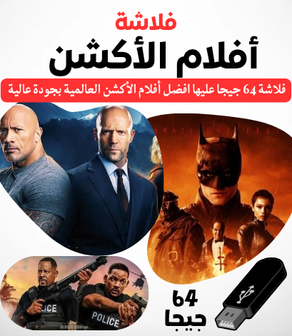 لكل مدمني الأدرينالين وعشاق المطاردات والانفجارات، جهزنا لكم جرعة أكشن مكثفة لن تجدوها في أي مكان آخر. نقدم لكم فلاشة أفلام الأكشن الأجنبية، بحجم 64 جيجا، مُحملة بأكثر من 70 فيلمًا من أقوى إنتاجات