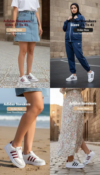 سنيكرز Adidas حريمي بلون ابيض ونبيتي مقاسات 37 لـ 41 قالب مظبوط متوفر الأن للشحن في مصر من تيموز فاشون اطلبيه بخصم مميز!