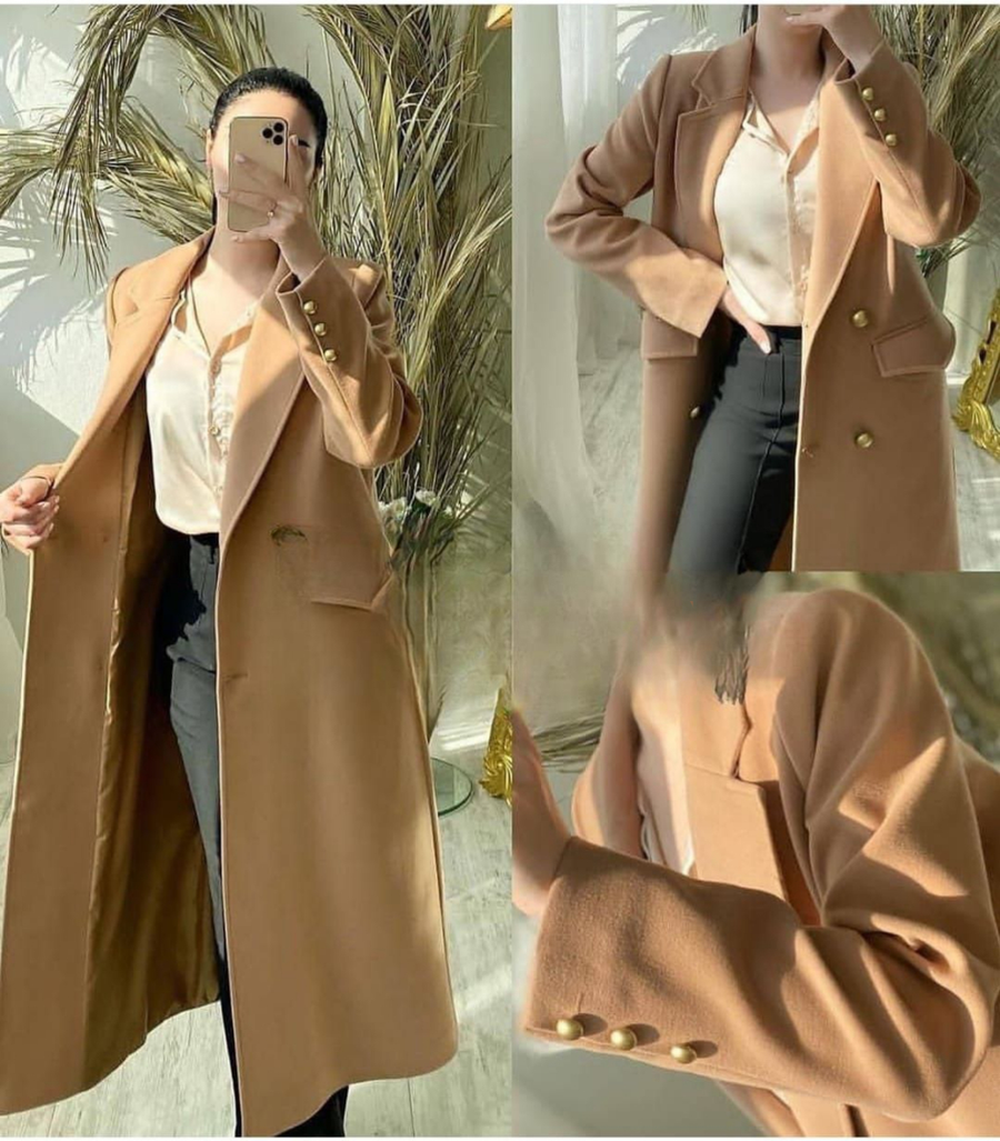 "تألقي هذا الشتاء مع بالطو حريمي طويل مستورد. مصنوع من خامة الجوخ الفاخرة المبطنة ليمنحكِ الدفء والأناقة. متوفر بجميع المقاسات."