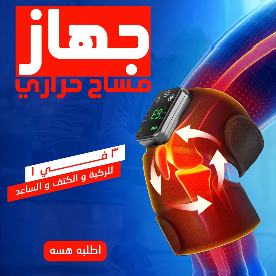 جهاز مساج حراري 3 في 1 للركبة والكتف والساعد. 3 مستويات حرارة، اهتزاز عميق، تشغيل لاسلكي، وشاشة لمس ذكية. توصيل مجاني لجميع محافظات العراق