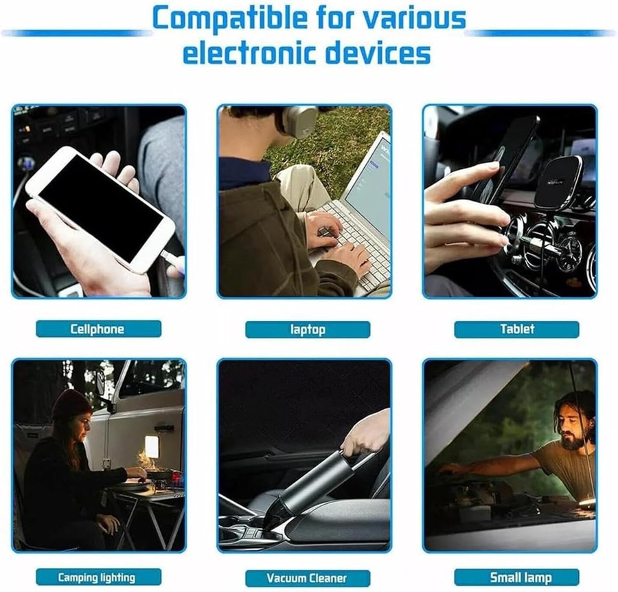 - سفر وتخييم: تشحن موبايلاتك وكل ملحقاتك الإلكترونية. 🏕️