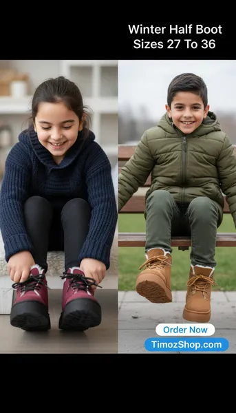هاف بوط اجز ولادي وبناتي مبطن فرو للتدفئه والراحة في الشتاء مقاسات من 27 لـ 36 قوالب مظبوطه