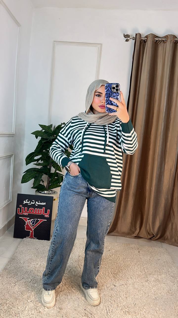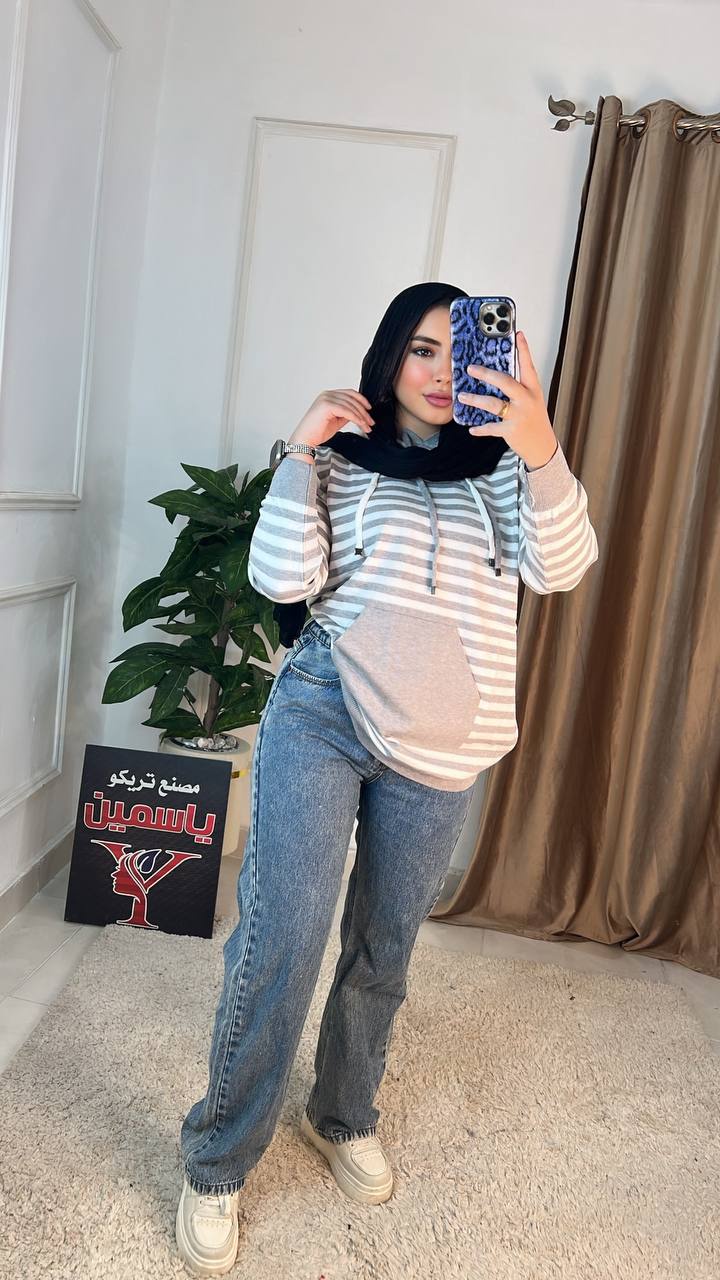 تمتعي بلمسة عصرية مع هذه البلوزة العملية المزودة بـ "كابيتشو" (غطاء للرأس) وجيب أمامي، مما يمنحكِ إطلالة شبابية ومريحة تناسب جميع خروجاتك السريعة واليومية.