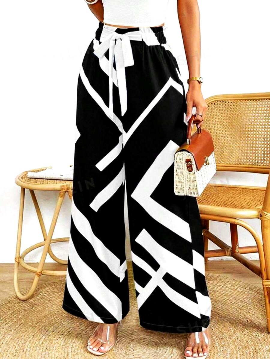 نقدم لكِ بنطلون كاجوال واسع ببرينت مميز، مصمم ليكون القطعة المفضلة في خزانتك.