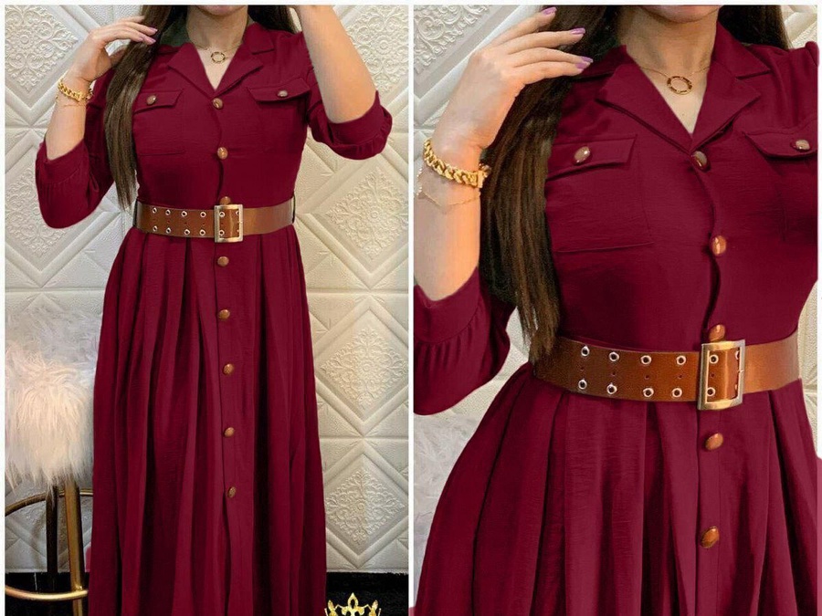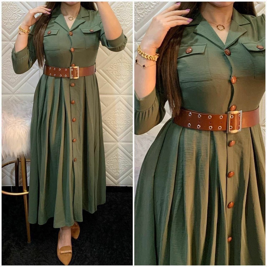 اكتشفي فستان صيفي بتصميم عصري وأنيق مع أزرار وحزام. مصنوع من خامة سي واي عالية الجودة ومناسب لوزن حتى 120 كيلو (4XL). اطلبيه الآن مع توصيل سريع لجميع المحافظات.