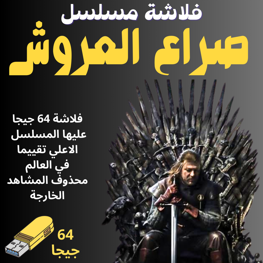 امتلك فلاشة أصلية تحتوي على جميع مواسم مسلسل Game of Thrones الثمانية، مترجمة للعربية وبجودة عالية. نسخة خاصة ومميزة محذوف منها المشاهد الخارجة لتناسب العائلة،