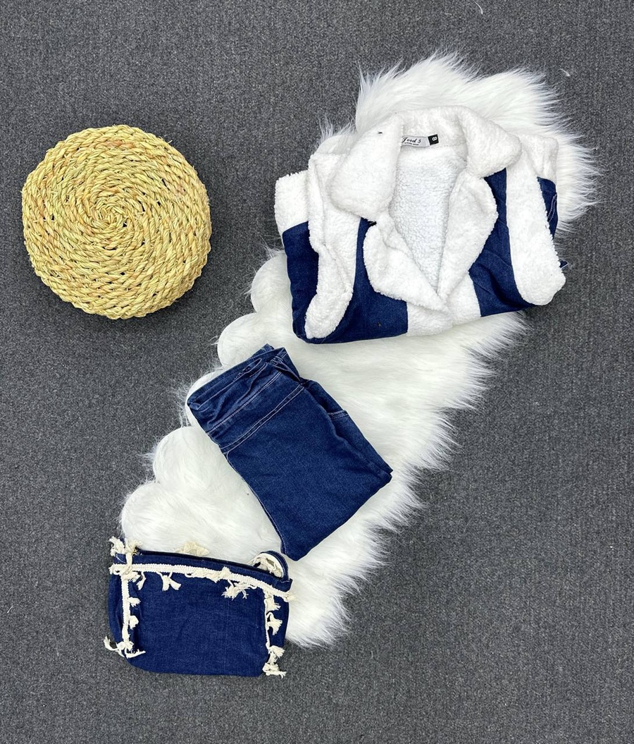 امنحي طفلتك الدفء والأناقة مع سوت جينز مبطنه فرو بناتي