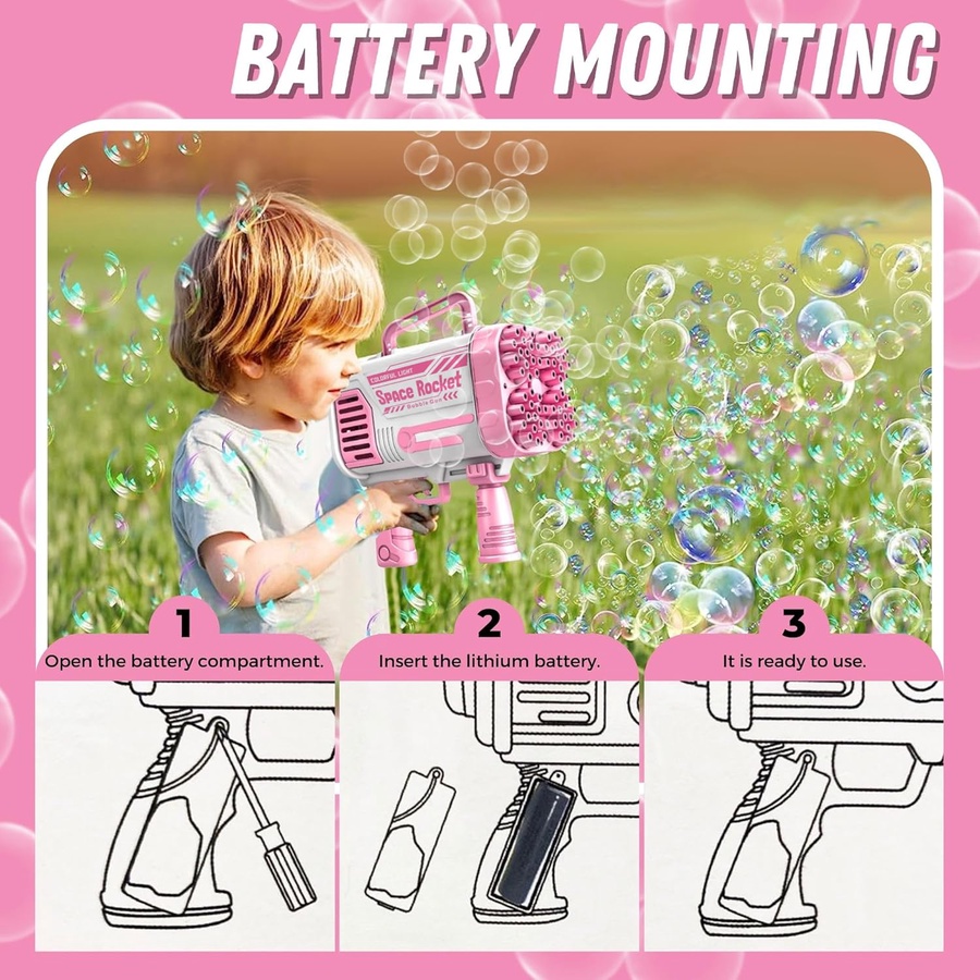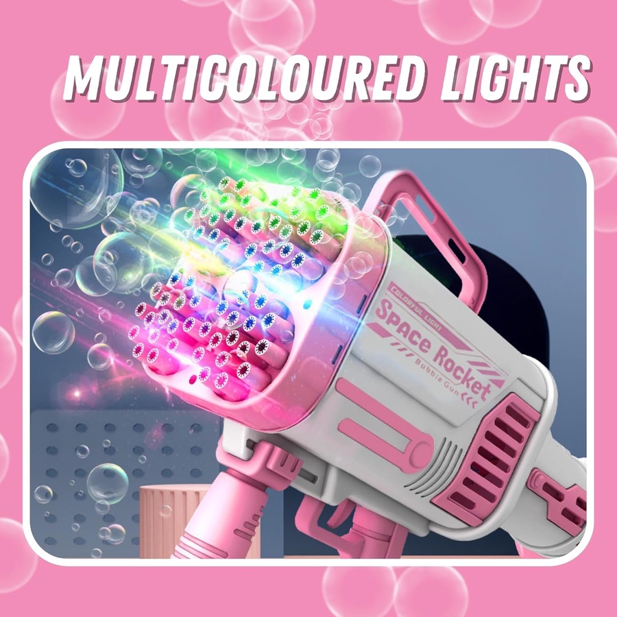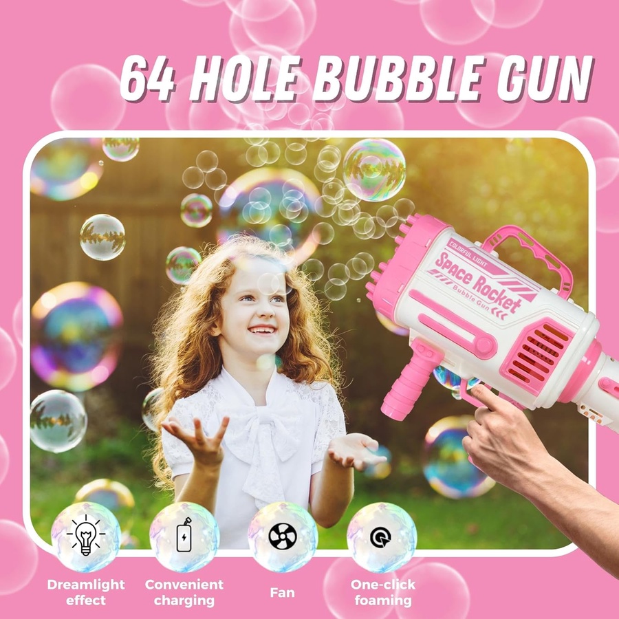 - 64 فتحة فقاعات: يعني سيل من الفقاعات! 🤯 أكثر من 10,000 فقاعة بالدقيقة! راح تسوي جو من الفرحة والبهجة بكل مكان.