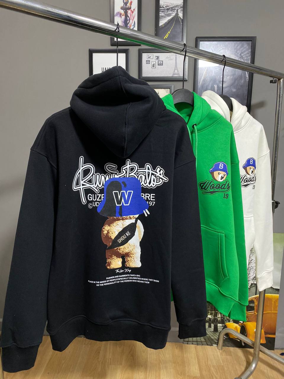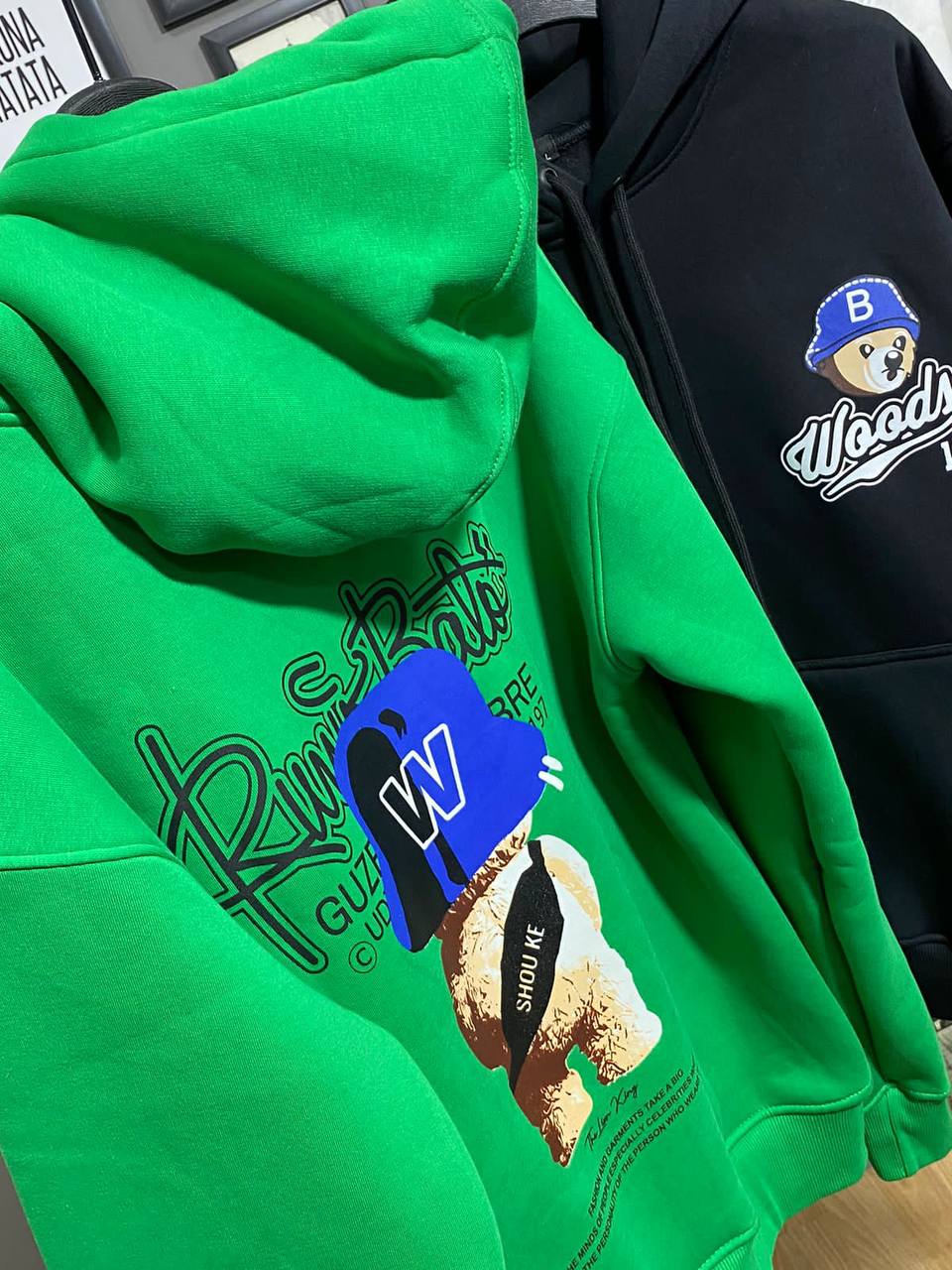 سويتشيرت بكابيتشو من خامة الميلتون المبطنة بوبرة، معالج ضد الانكماش. طباعة ديجيتال بأعلى جودة. متوفر بألوان اخضر - اسود - ابيض