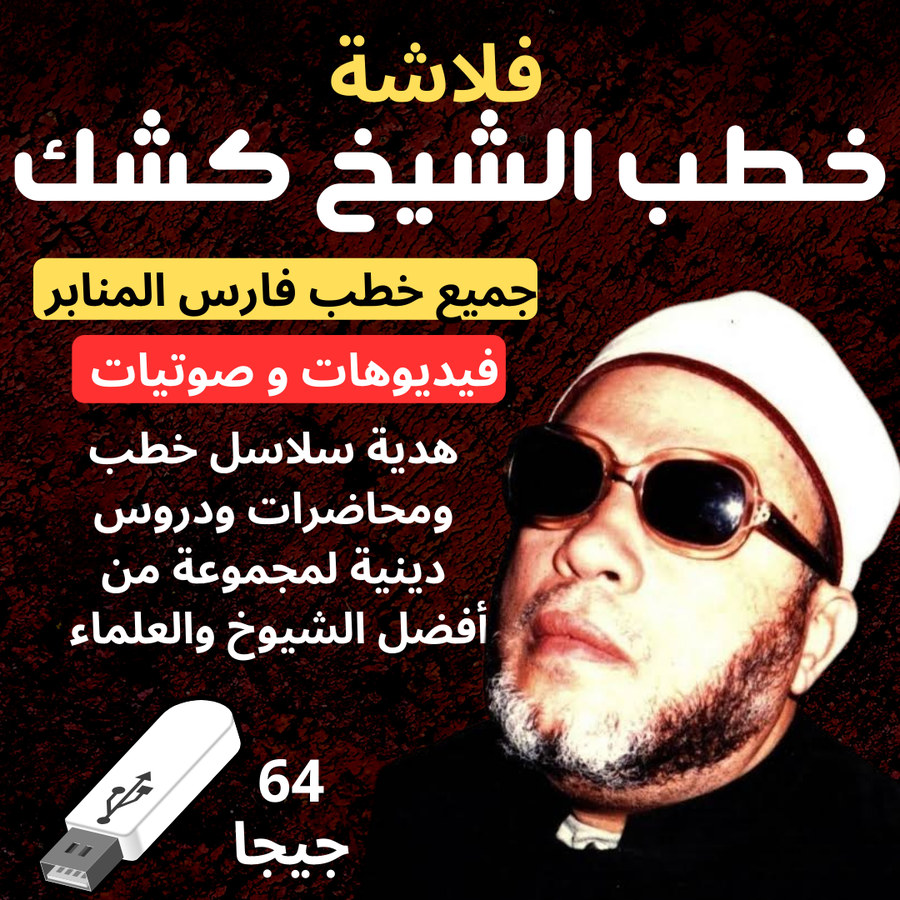 احصل على فلاشة 64 جيجا لدروس ومحاضرات دينية. تضم جميع خطب الشيخ كشك (فيديو وصوت) ومجموعة من الدروس لكبار العلماء مثل محمد حسان، مصطفى العدوي، وخالد الراشد. "