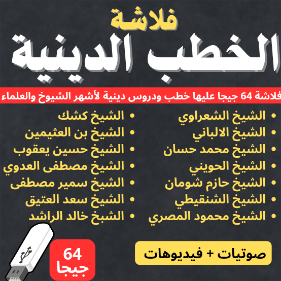 فلاشة الدروس والمحاضرات الدينية لمجموعة من الشيوخ والعلماء 💥 جميع خطب ودروس الشيخ كشك الشيخ مصطفى العدوي الدكتور حازم شومان محمد بن على الشنقيطي