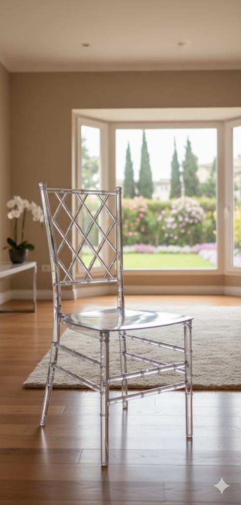 كرسي بولي كربونايت عالي الجودة، ضد الكسر، قابل للفك والتركيب، بوزن 5200 جرام، شفاف ومقاوم للعوامل الجوية، لا يتأثر بالحرارة ولا يغير لونه.