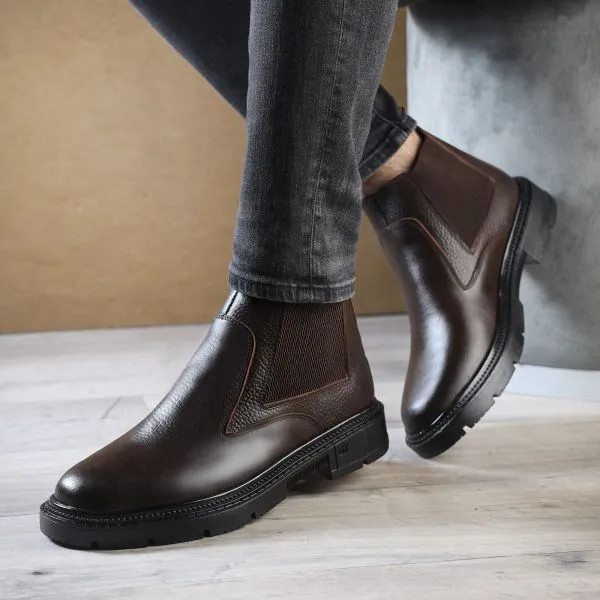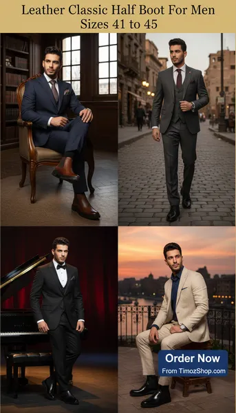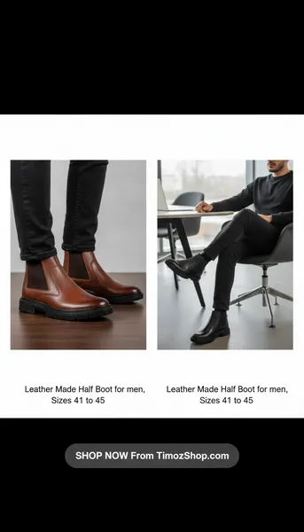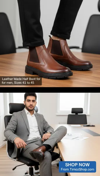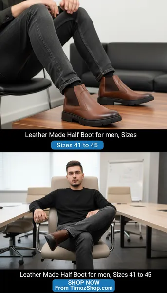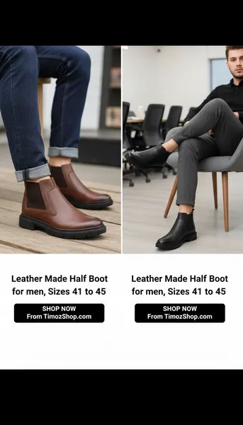 هاف بوط رجالي من الجلد الطبيعي 100% - مقاسات من 41 ل 45 - نعل رابر مطاطي - ألوان أسفل وهافان وبني - طلب الآن واستمتع بأناقة وراحة لا تقارن.