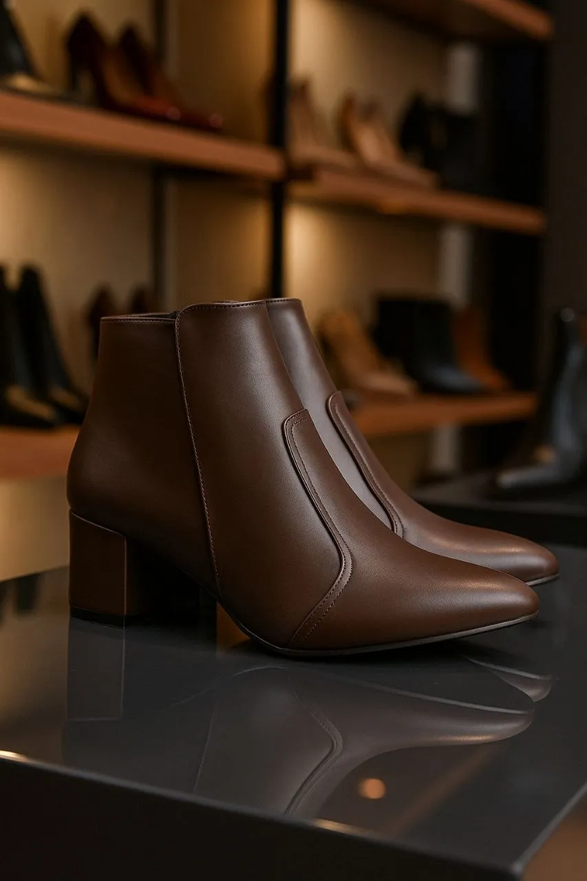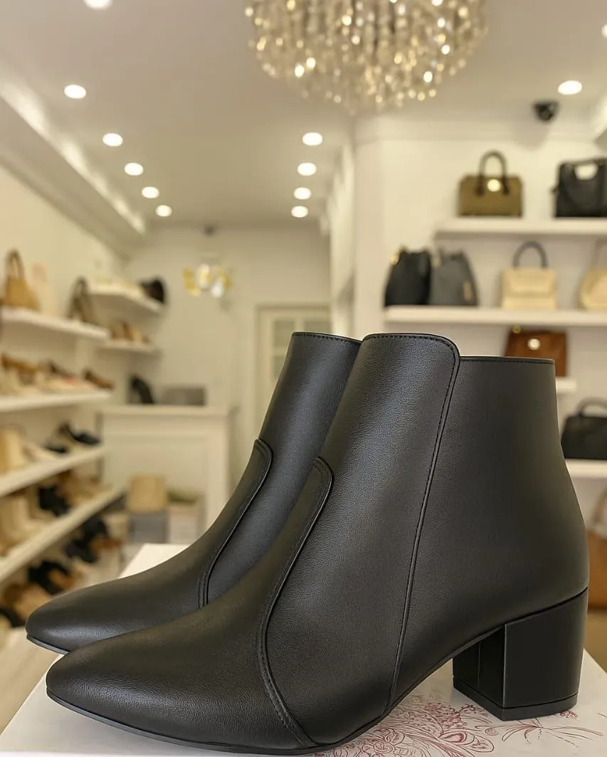بوط حريمي جلد طبيعي بكعب مريح 3 سم