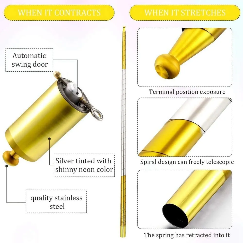 هاي العصا تنفتح وتنسحب بكل سهولة ويسر. راح تكدر تتحكم بيها بحركة سريعة ومثيرة تخلي عيون الجمهور عليك ومصدومين من اللي يشوفوه! جربها وشوف شلون السحر يصير حقيقة.
