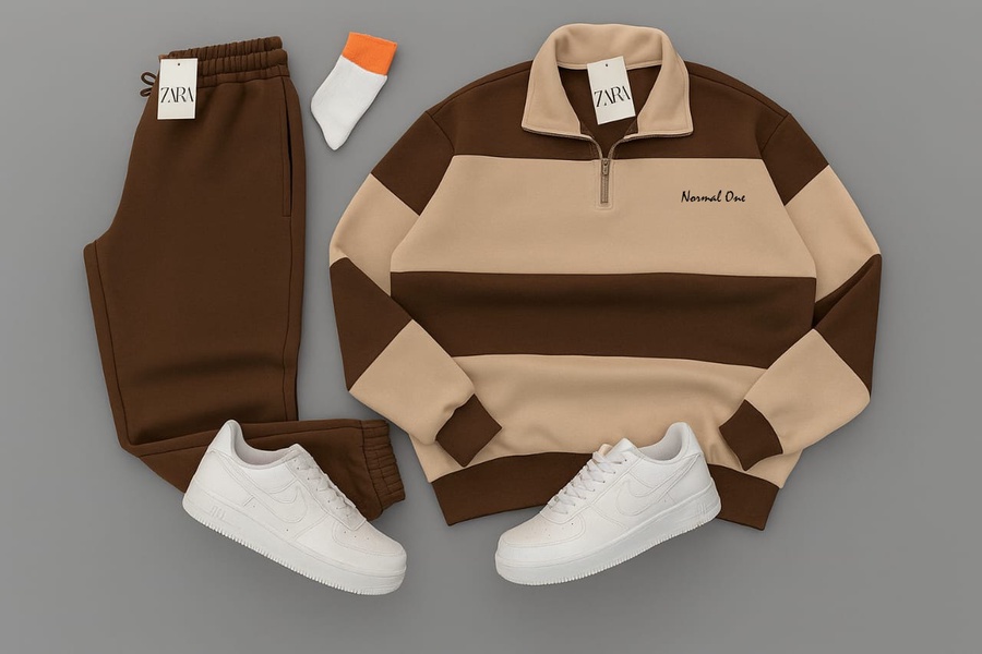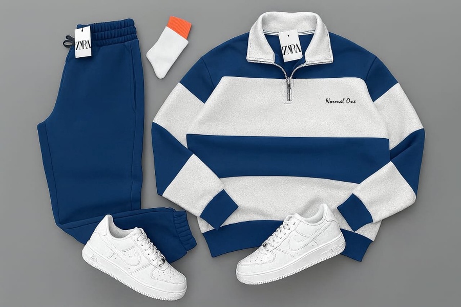 ترنج رجالي شتوي أنيق متاح بمجموعة ألوان مميزة: زيتي وأبيض، بني وبيج، أسود وفضي، إنديجو وأبيض. مصنوع من خامة بلوش خشنة عالية الجودة ومبطن من الداخل