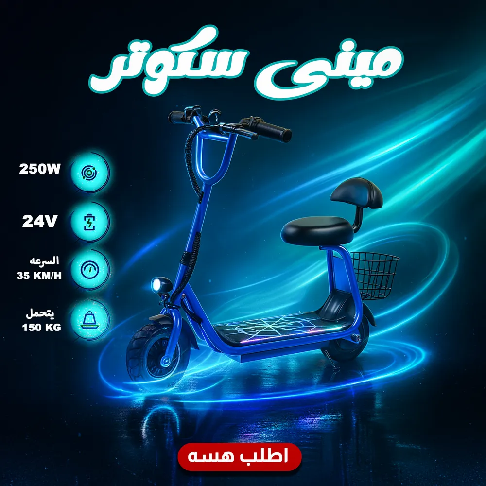 خلي طفلك يعيش المغامرة بأمان وأناقة! ميني سكوتر كهربائي بسرعة توصل لـ35 كم/ساعة، تصميم ينطوي، وبطارية تعيش وياك المشوار الطويل 🚀