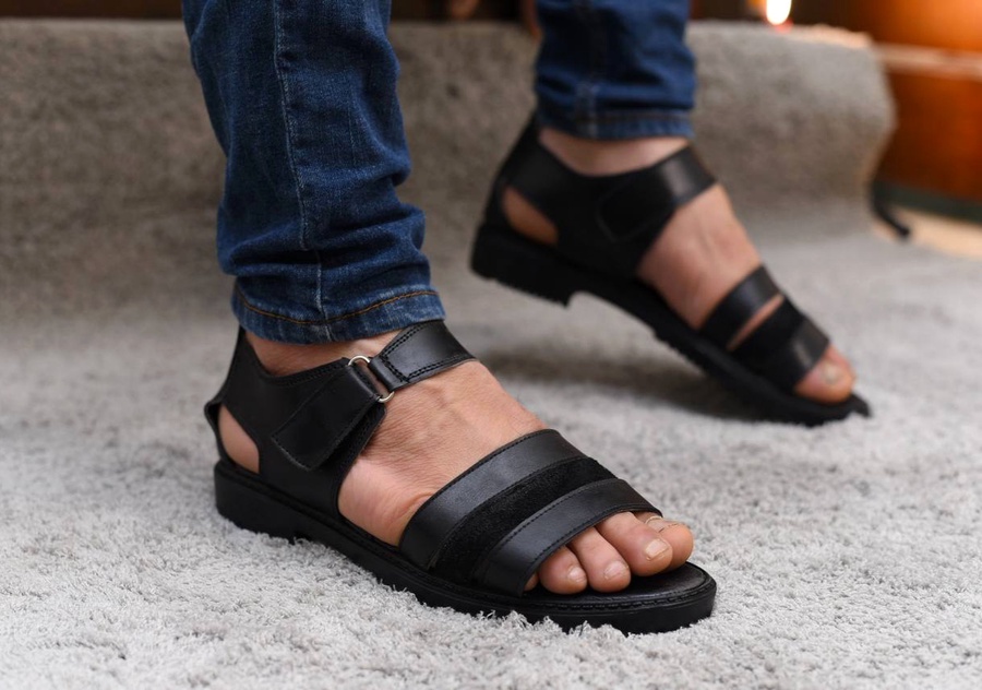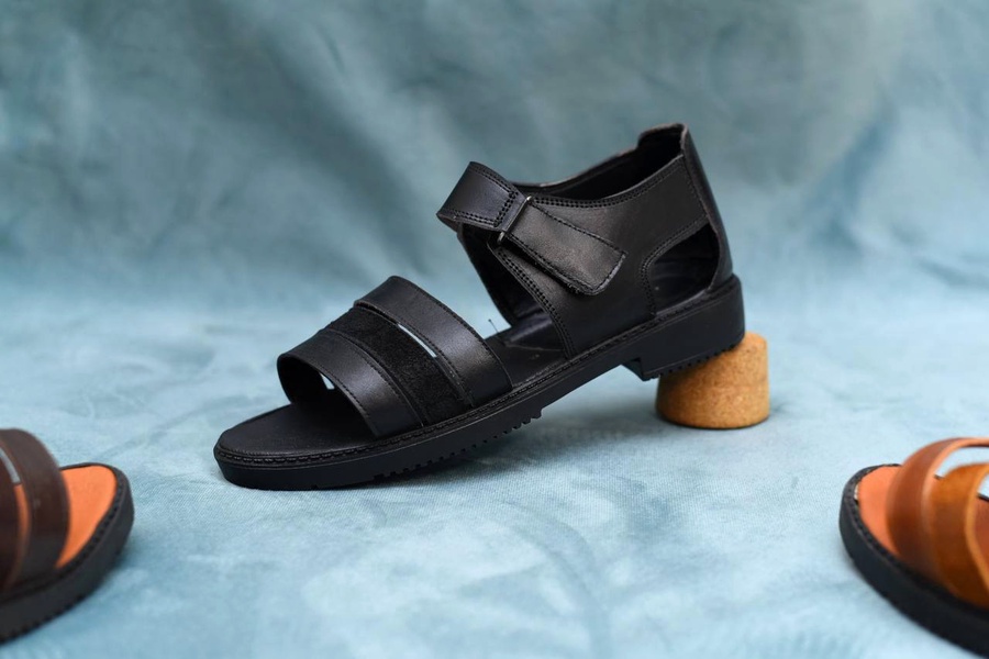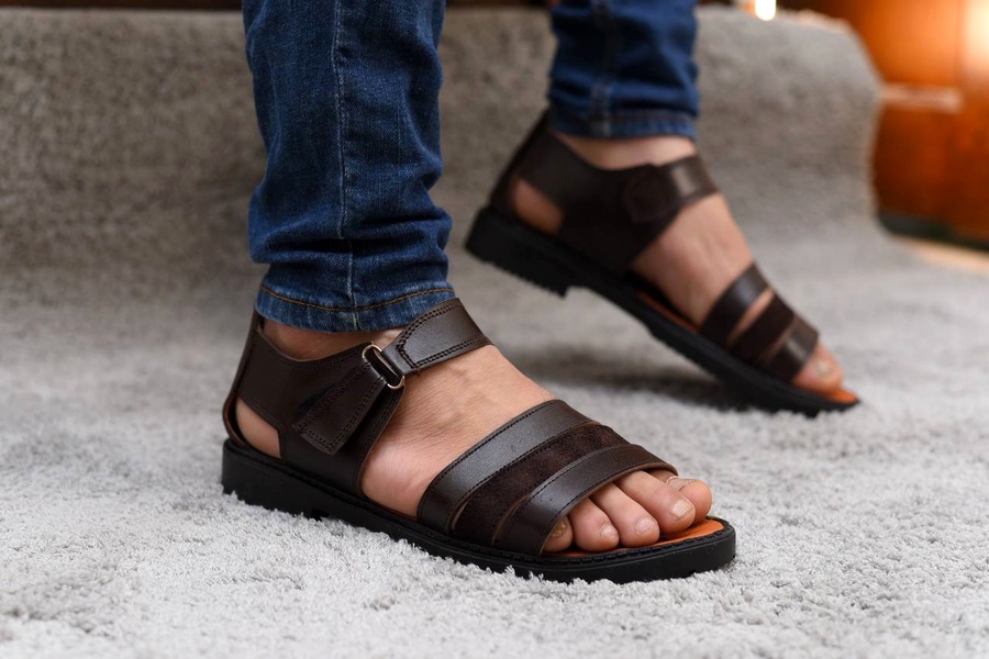 صندل جلد طبيعي 100% رجالي يوفر راحة فائقة. مريح وسهل الارتداء، مناسب لجميع الأعمار ومرضى السكر، بفضل الفرش والنعل الطبي المرن المريح للقدمين.