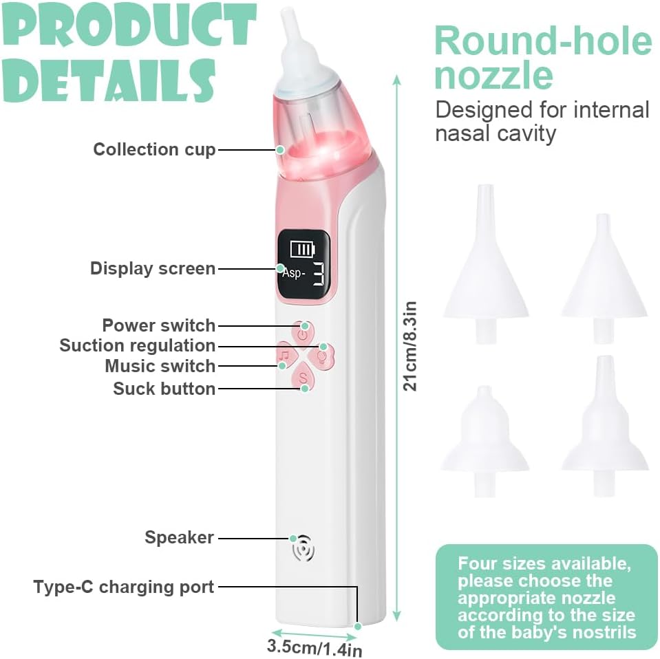 جهاز شفط المخاط الكهربائي للأطفال والرضّع. يوفر شفطًا آمنًا ولطيفًا بمستويات متعددة ورؤوس سيليكون طبية. يعمل بالشحن USB،لراحة فورية ونوم أعمق لطفلك.