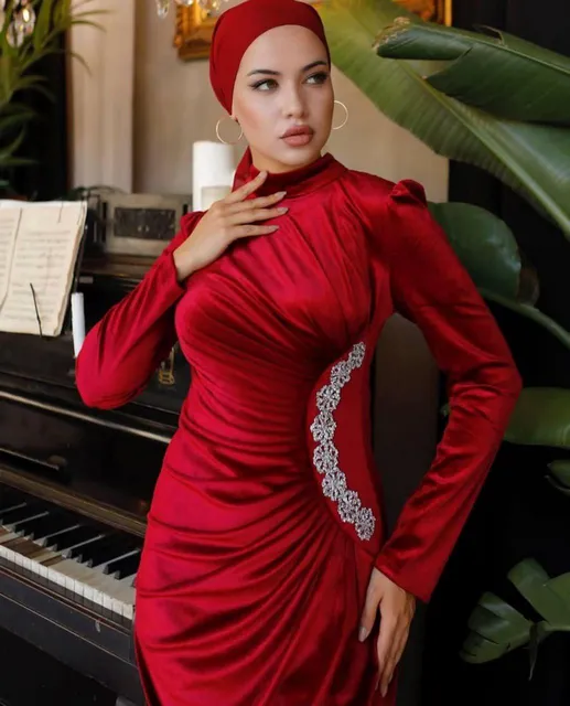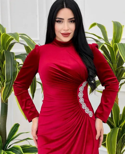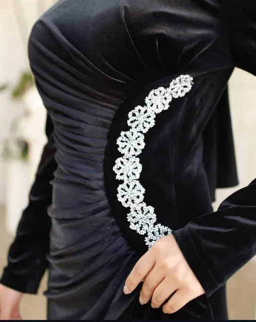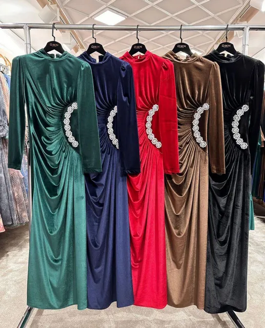 فستان يجنن بخامة قطيفة ودانتيل تحفة هتخليكي شيك وفخمة في أي مناسبة. ❤️