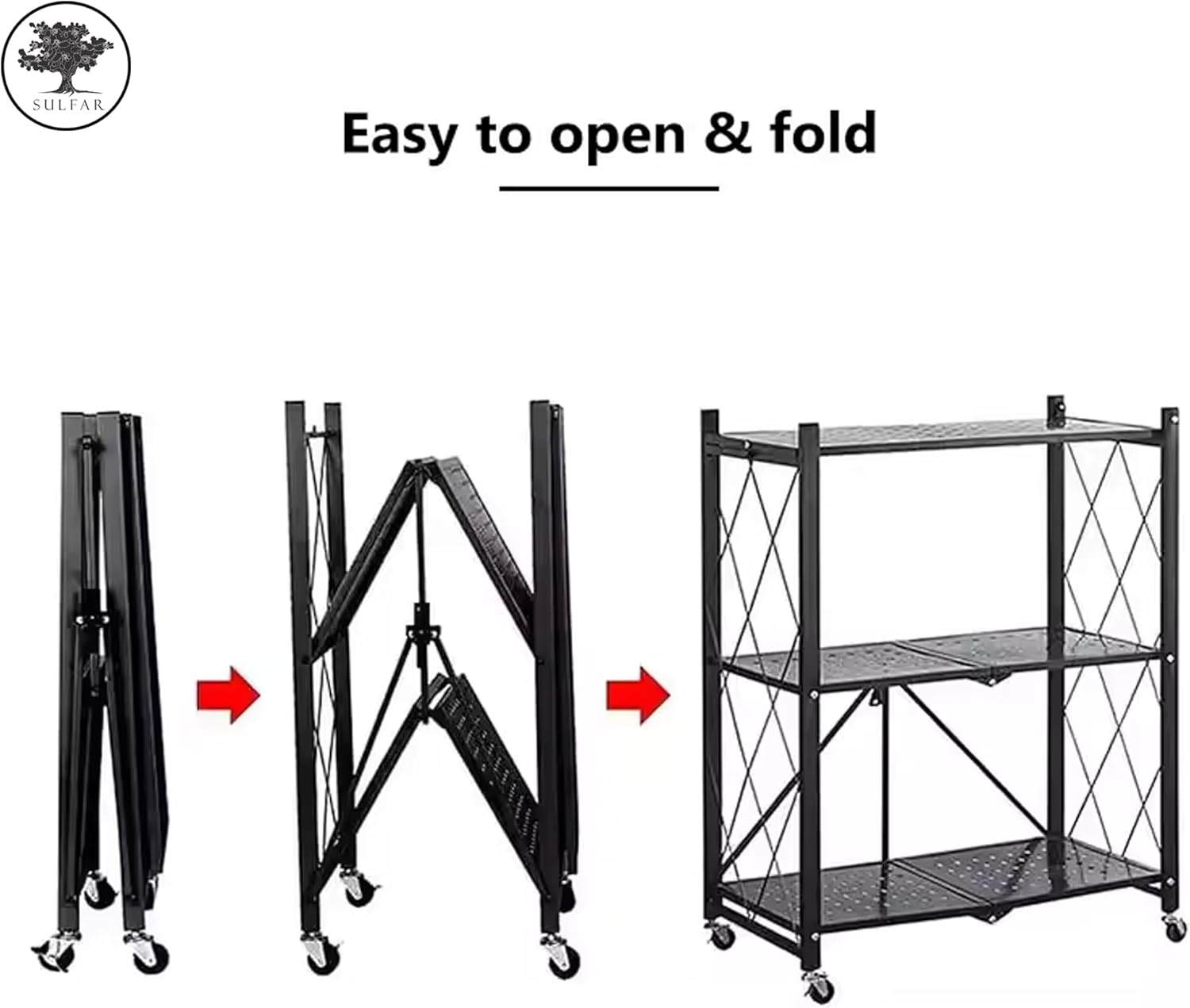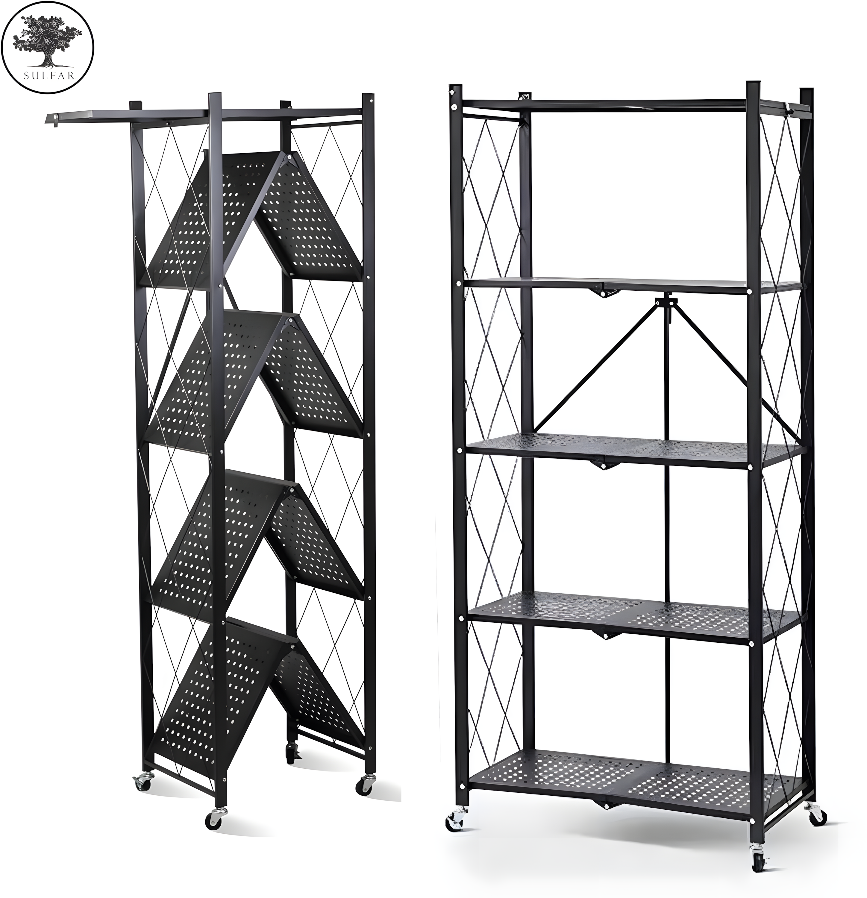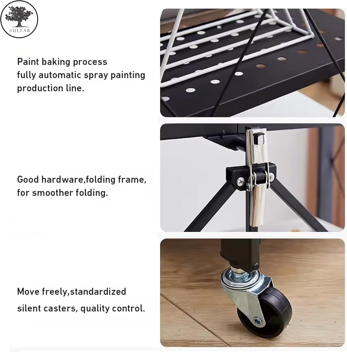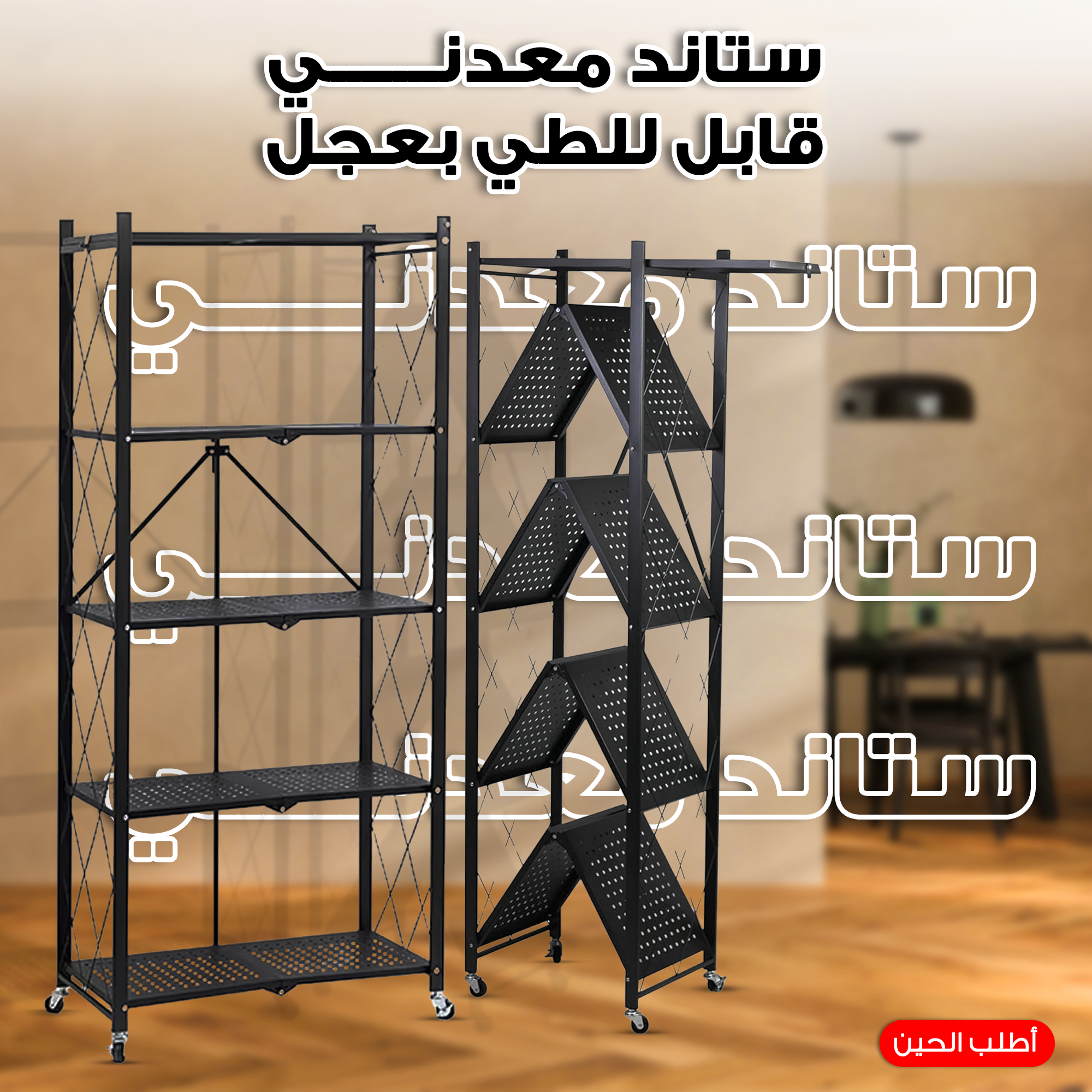 ستاند معدني قابل للطي ورف فولاذي قابل للطي بسطح مثقّب وعجلات دوّارة لتخزين عملي وسهل. العرض يشمل خصم مميز وشحن مجاني لجميع محافظات سلطنة عُمان.