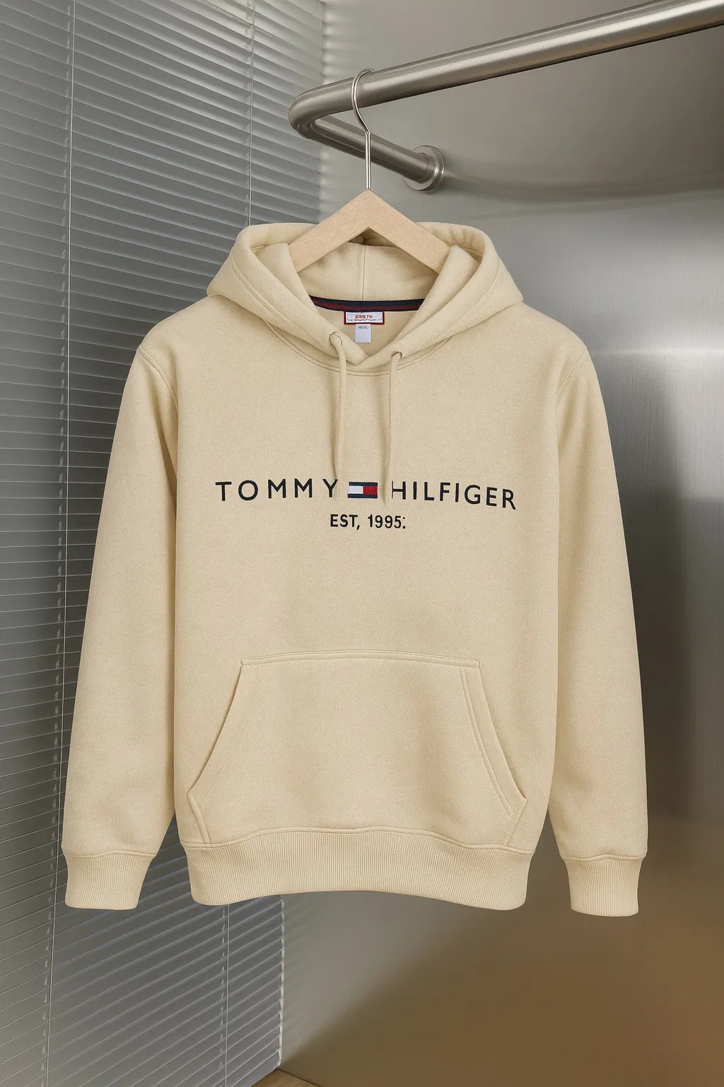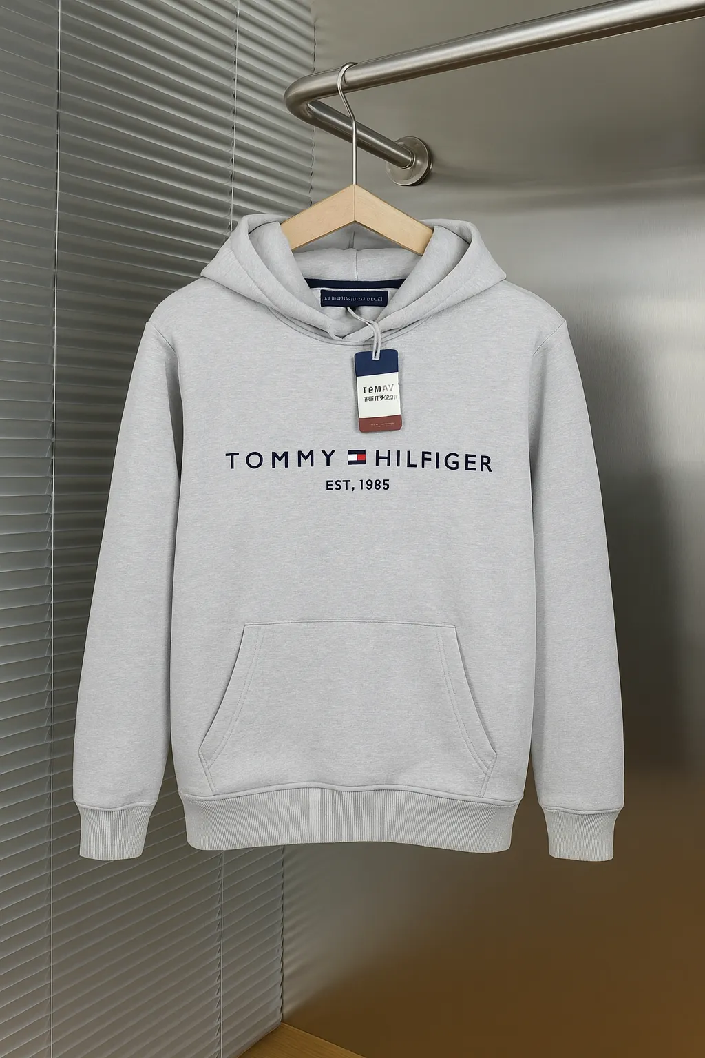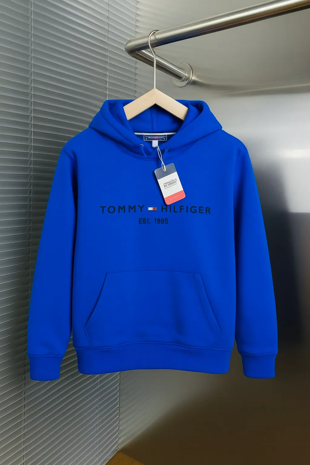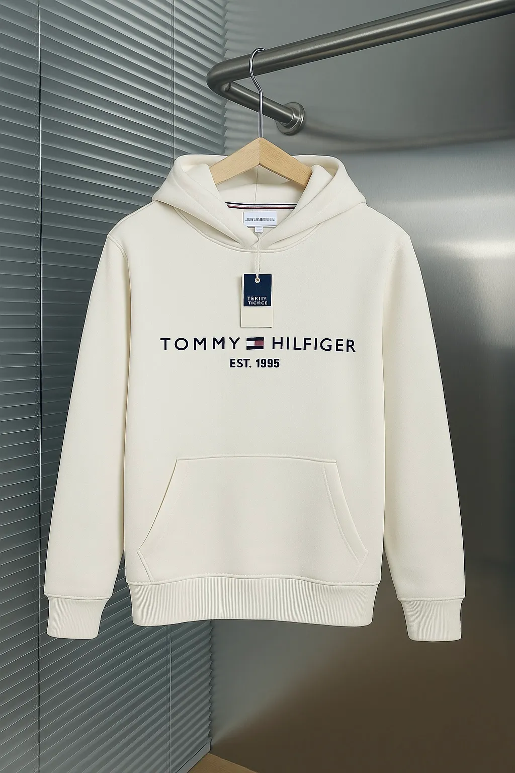 هودي تومي رجالي بخامة ملتون مبطن من الداخل بوبره ناعمة، معالج ضد الانكماش وكتابة تطريز بأعلى جودة. متوفر بألوان متعددة ومقاسات من L حتى 3XL، مثالي للشتا