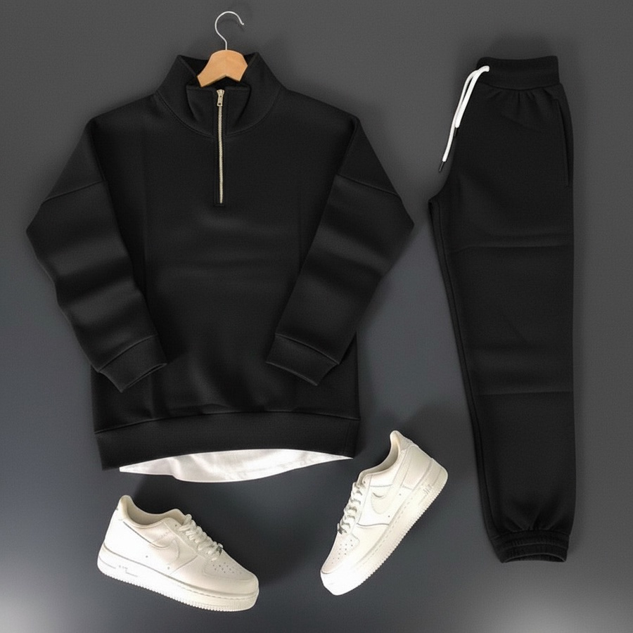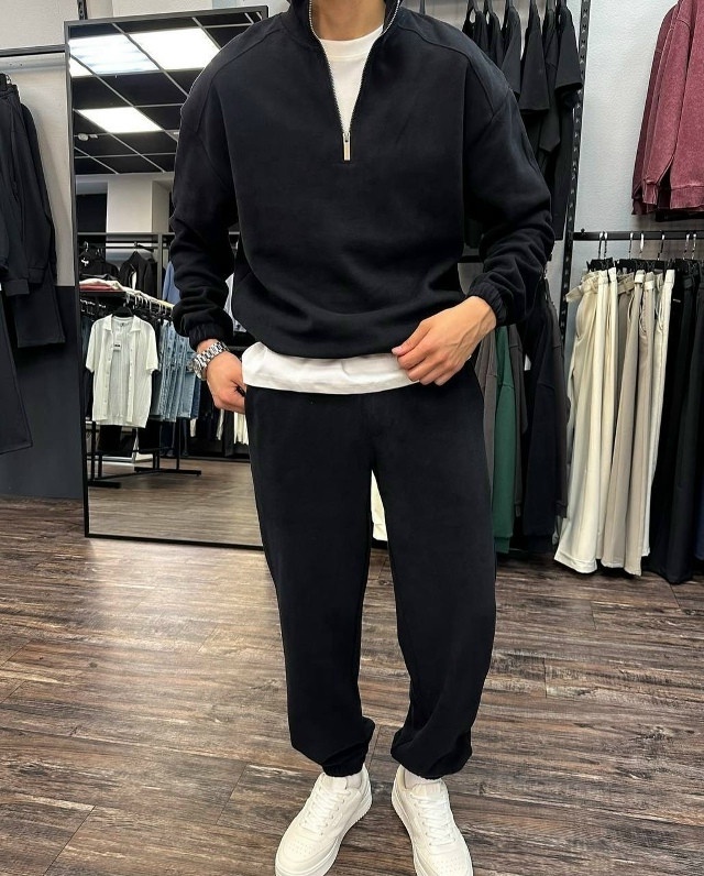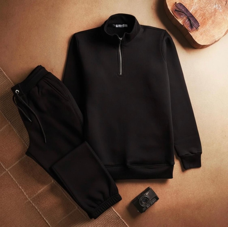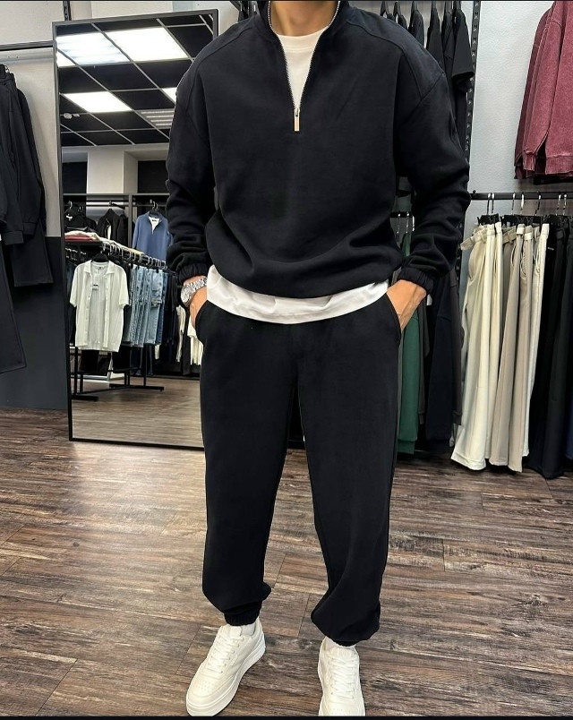 ترنج شتوي رجالي بنص سوستة، خامة ثقيلة ودافئة عالية الجودة ضد الوبرة والانكماش. تصميم عصري وأنيق يناسب الطلعات والنادي والبيت. متوفر بألوان (أسود، رصاصي، زيتي)