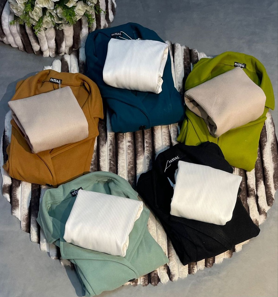 توينز مكون من بيزك دريس ريب بالطو جوخ 😘