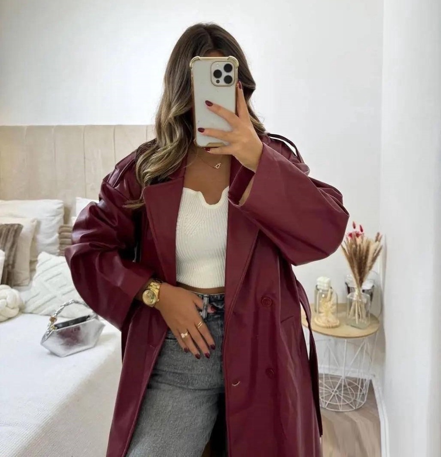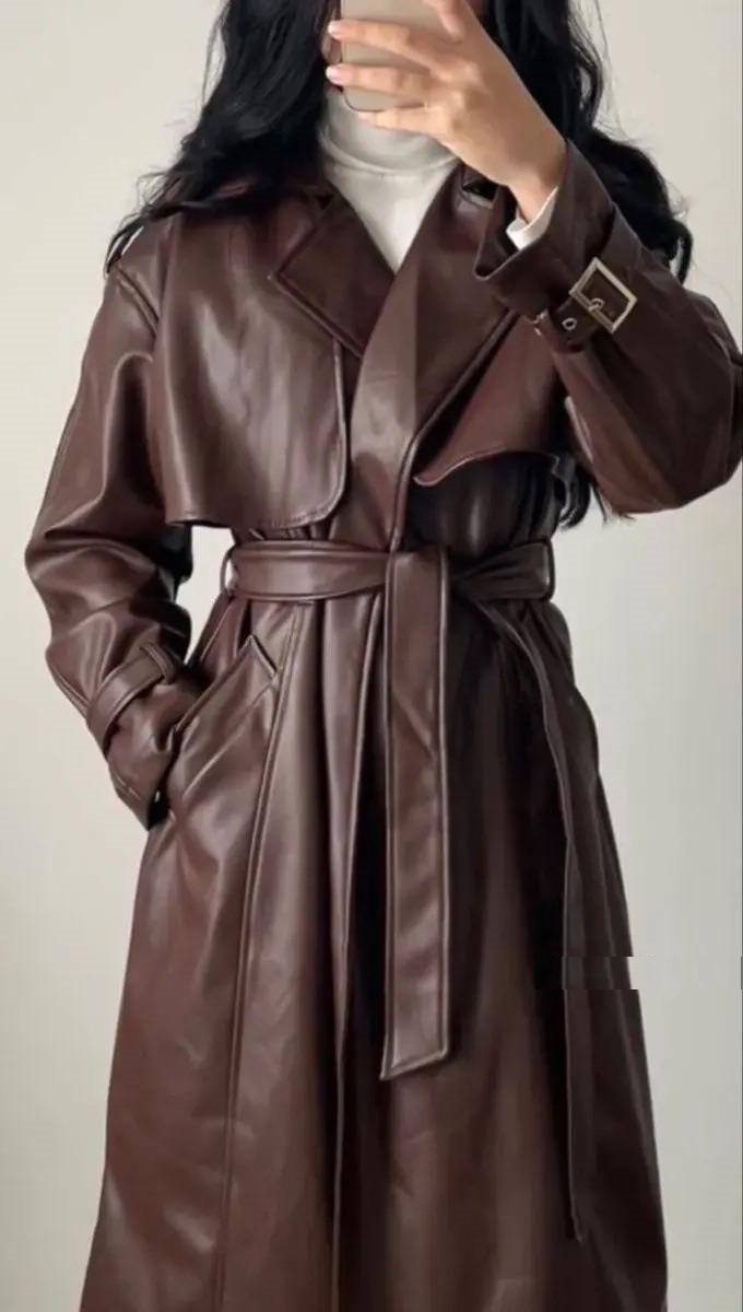 بالطو جلد مستورد فاخر بمقاس يناسب 70 إلى 85 كيلو. متوفر بألوان نبيتي، أسود، زيتي، وهافان. قطعة أنيقة تمنحك ستايلاً مميزاً هذا الشتاء.