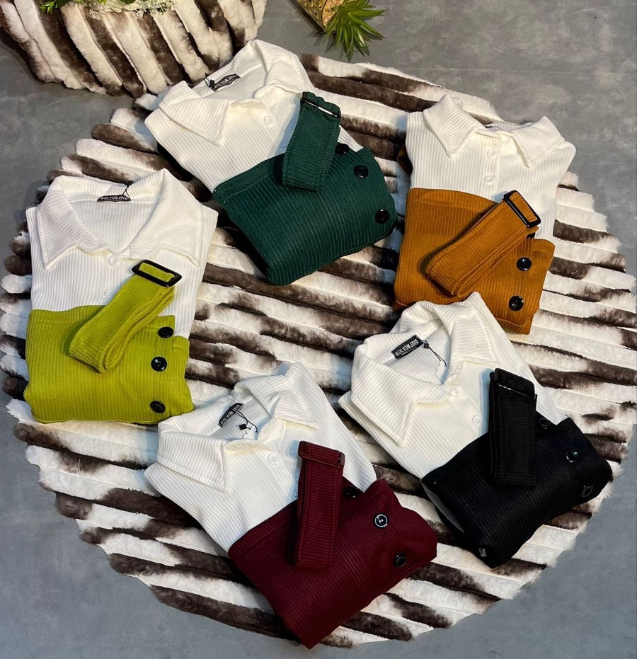 تصميم فريد ومختلف يجمع بين لونين متناغمين بأسلوب عصري، مع لمسة كلاسيكية من ثلاثة أزرار تضيف تفصيلاً أنيقاً يخطف الأنظار