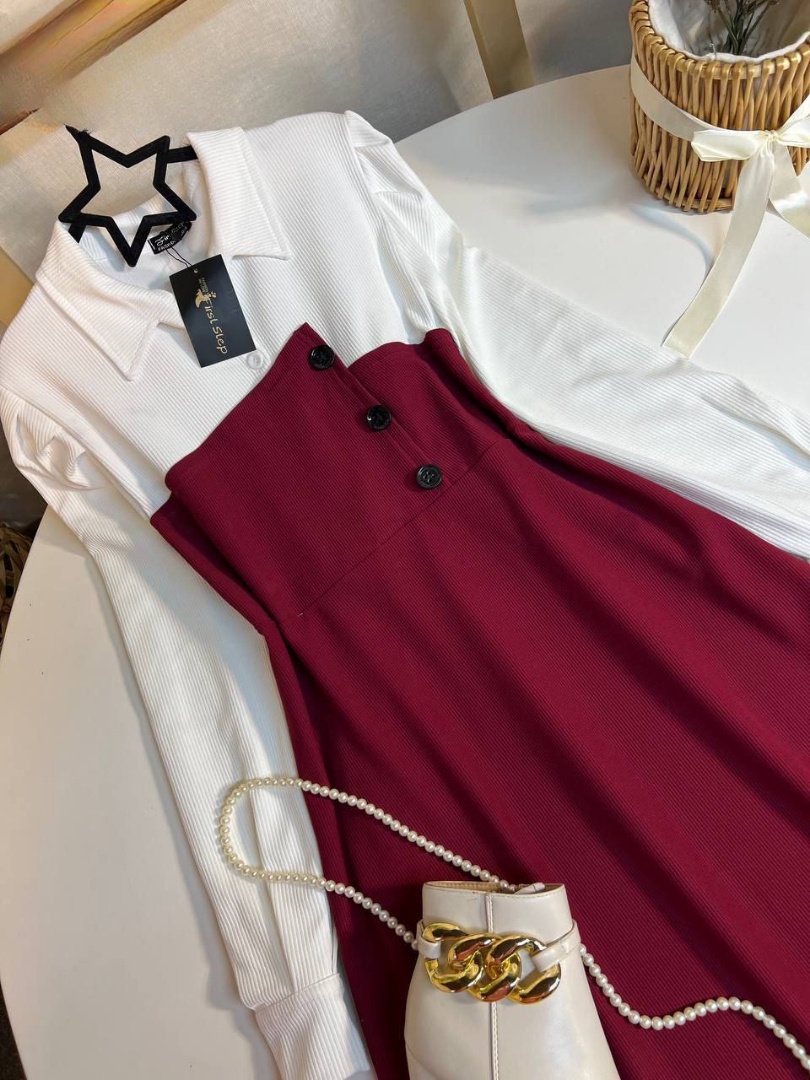 ✨ دريس أنيق بـ 2 لون و3 أزرار ✨