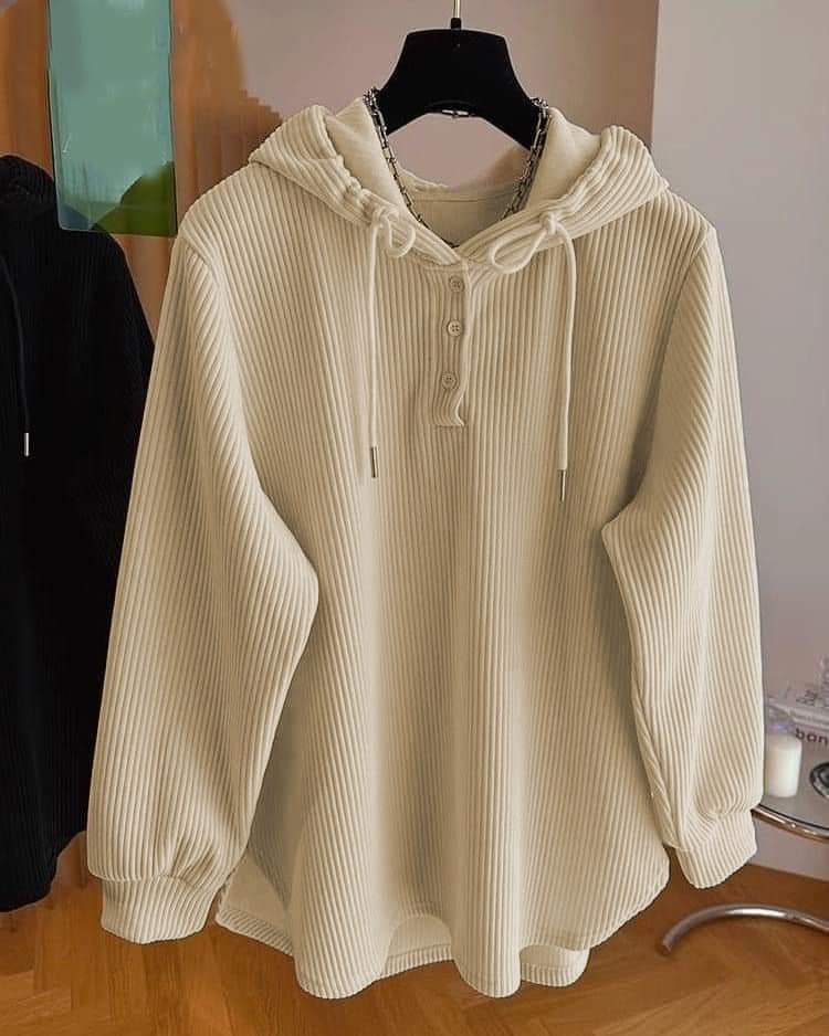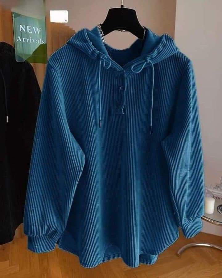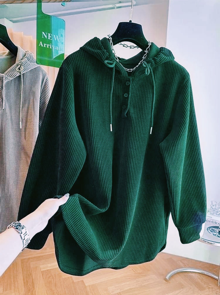سويتشيرت حريمي قطيفة مضلع، خامة ناعمة مكسترة من الداخل ومعالجة ضد الوبرة والانكماش. متوفر بألوان عصرية: لبني، زيتي، سيمون، إنديجو، بيج، رمادي، منت،