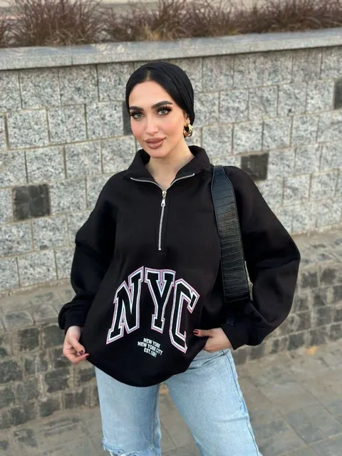 🧥 سويت شيرت نص سوستة مطبوع NYC